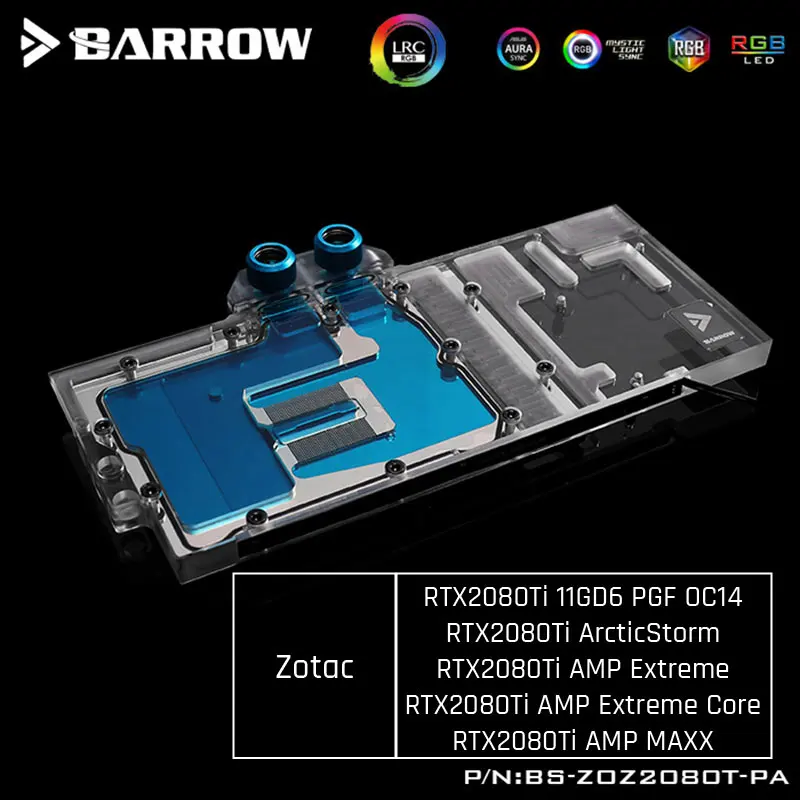 - Product name : Barrow BS-ZOZ2080T-PA Full Cover Graphics Card Water Cooling BlocksFor Zotac RTX2080Ti 11GD6 PGF OC